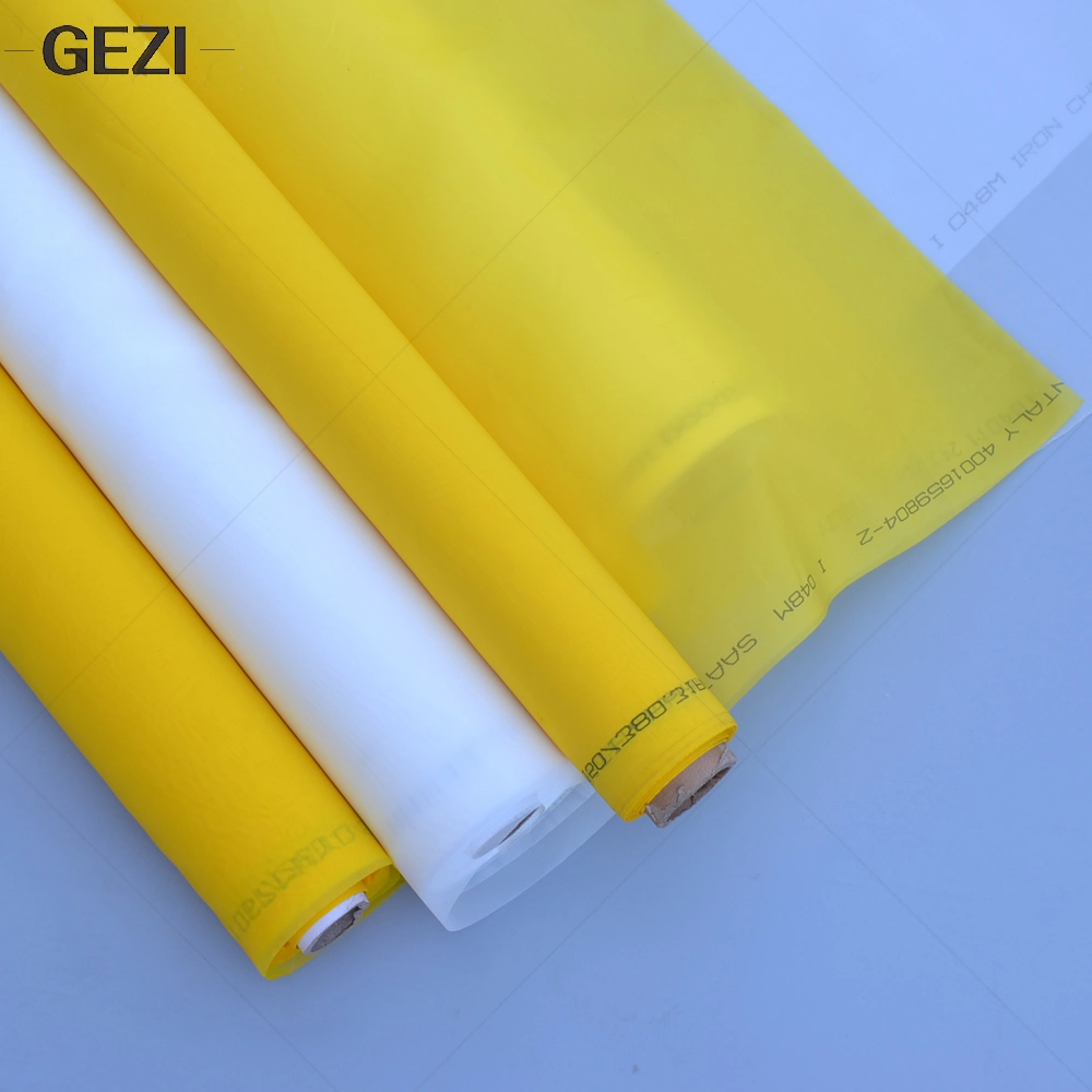 Gezi silk screen printing screen mesh are made with low-elongation fabric polyester with plain weave designed to improve strengthand allow for higher and fastertension stabilization in silk mesh screen. It' s widely used in silk screen printingmachines, t shirt silk screen printing, pcb, glass printing, textile printing, andceramic printing, etc.